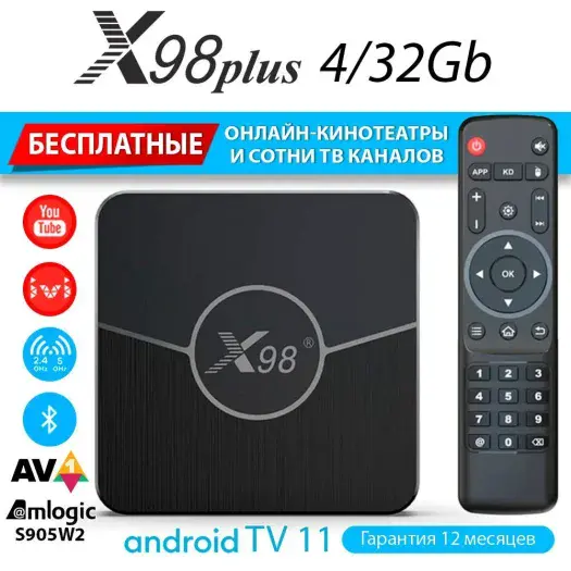 Смарт приставка X98 Plus – это ваш универсальный мультимедиа-центр! С поддержкой 4/32 GB памяти и мощным процессором, устройство обеспечивает плавную работу приложений, просмотр видео в 4K-качестве и доступ к любимым платформам. Идеальное решение для тех, кто ищет комфорт и функциональность.